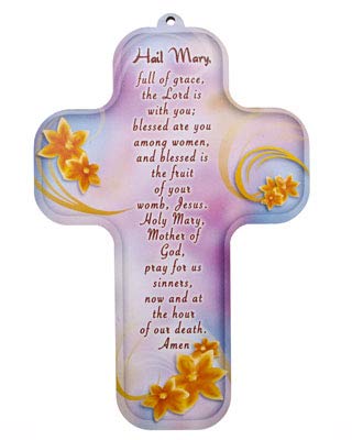 Amazon Com Hail Mary Prayer Picture Cross On Wood 5 Home Kitchen