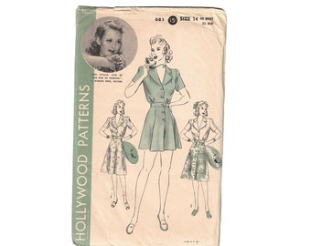 1930s Beachwear Playsuit Skirt Vintage Sewing Pattern 2767 Lady Marlowe