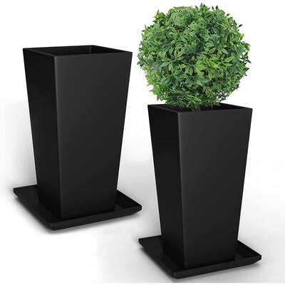 Worth Garden Tall Square Planters For Outdoor Plants Indoor Resin Tree Planter 22 Inch Large Plastic Flower Pots 2 Pack Front Porch Modern Matte Wavy Finish Decorative Black Containers Patio Deck