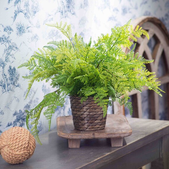 Lace Fern Faux Plant Everyday Spring Arrangement In Woven Etsy Uk