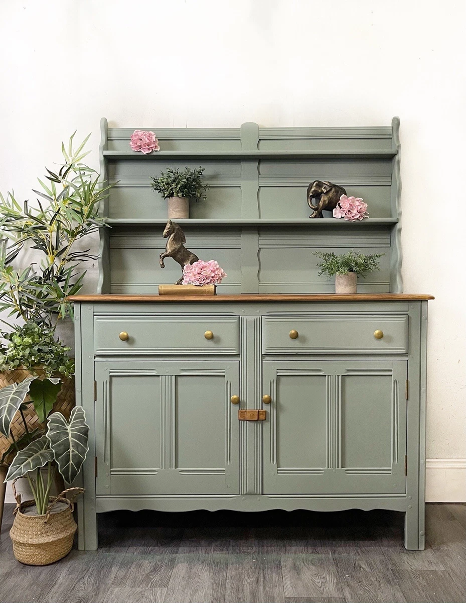 Painted Welsh Dresser Vintage Ercol Solid Oak Green Duck Egg Blue Grey Ebay